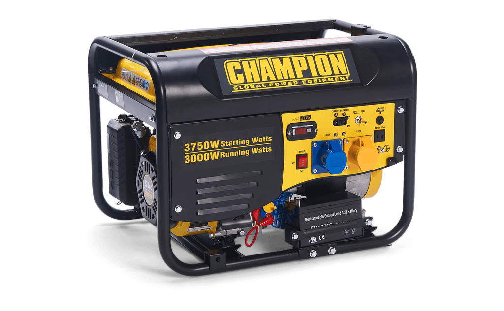 The Champion Power Equipment CPG4000E1 portable petrol generator is powered by a Euro 5 7.5hp 224cc Champion single cylinder, 4-stroke OHV engine that produces 3000 running watts and 3750 starting watts.